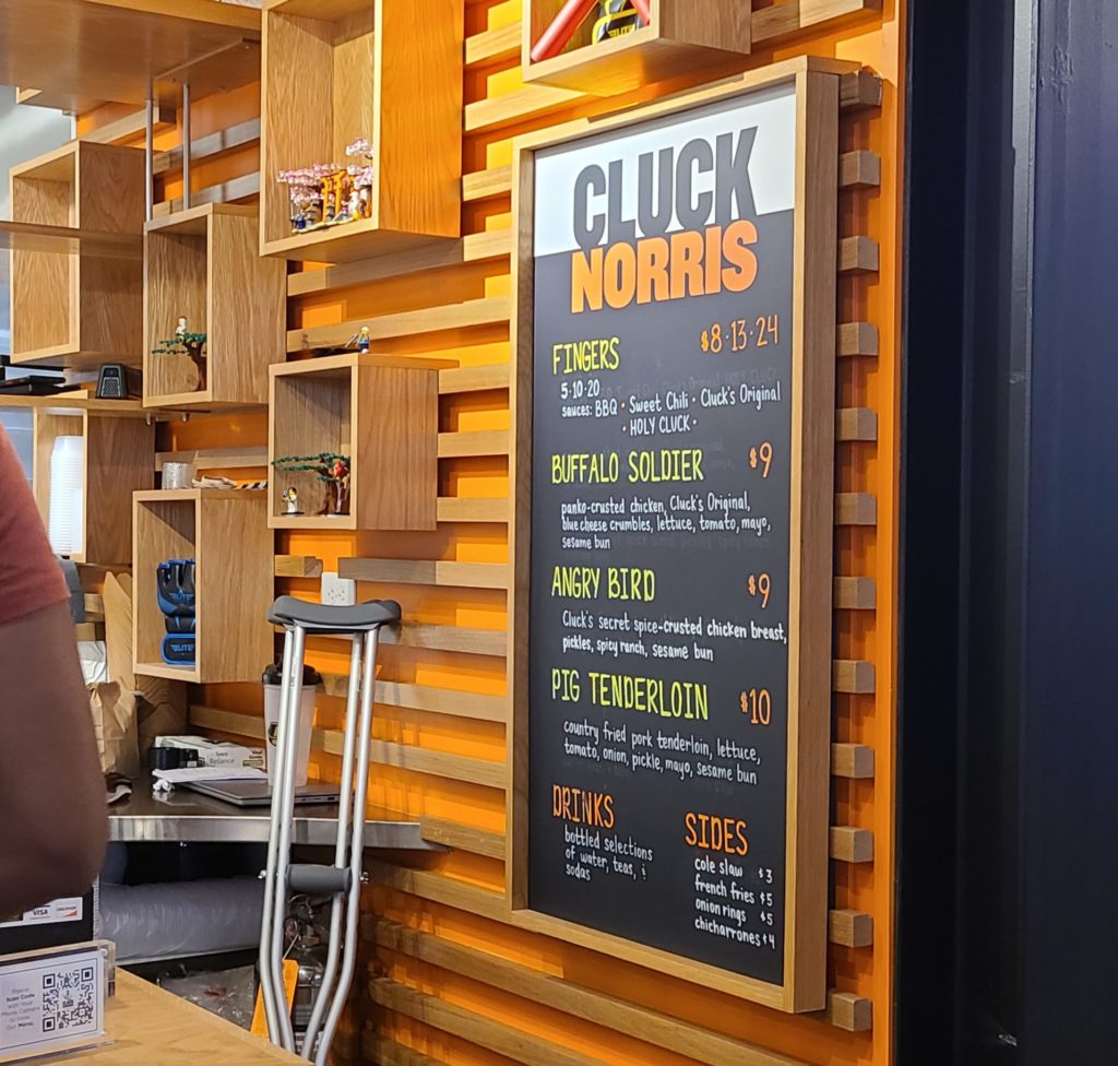 Cluck Norris can sneeze with their eyes open. The concept of ghost kitchens isn’t new, but its become more prevalent across the country and especially Columbus over the past few years. Newer to the market is an offshoot of Rusty Bucket called Cluck Norris Ass Kickin’ Chicken. Columbus Business First had an article in April about the concept and it was summed up as, “There’s not a lot of risk for us… Our kitchens already exist. The bills are essentially paid, so we only see positives to gain.” It’s true! Not much to lose here if you have all the ingredients and simply need to label the door in which you ship fingers out as something other than “Rusty Bucket.” Out of the Rusty Bucket family came Josh Yosick to deliver the new Cluck Norris concept, slinging “black belt-quality dishes” and playing on the chicken-y Chuck Norris moniker. Our adventure this week carried us to Budd Dairy Food Hall to snag some fingers from the brick-and-mortar location of Cluck Norris.