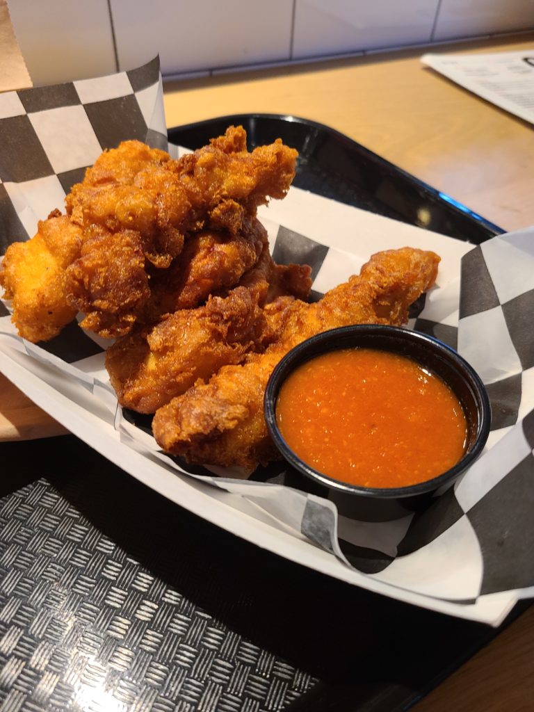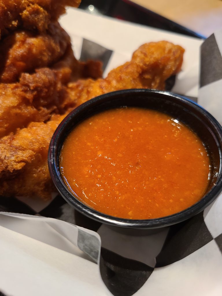 Time waits for no chicken fingers, unless those chicken fingers are from Cluck Norris. As I gazed upon the golden brown fingers and sack of fries, my eyes were drawn to the napalm orange glow of the Holy Cluck! sauce. A small innocuous container for dipping, I took a whiff and began dipping strips. On initial dip, there was a solid hit of vinegar, a slight saltiness, and the heat of a mid-range pepper, likely habanero, but Rusty Bucket/Cluck Norris was unreachable for confirmation. It’s a thicker sauce with a bit of chunkiness, focusing more on the ingredients within than a runny vinegary concoction.