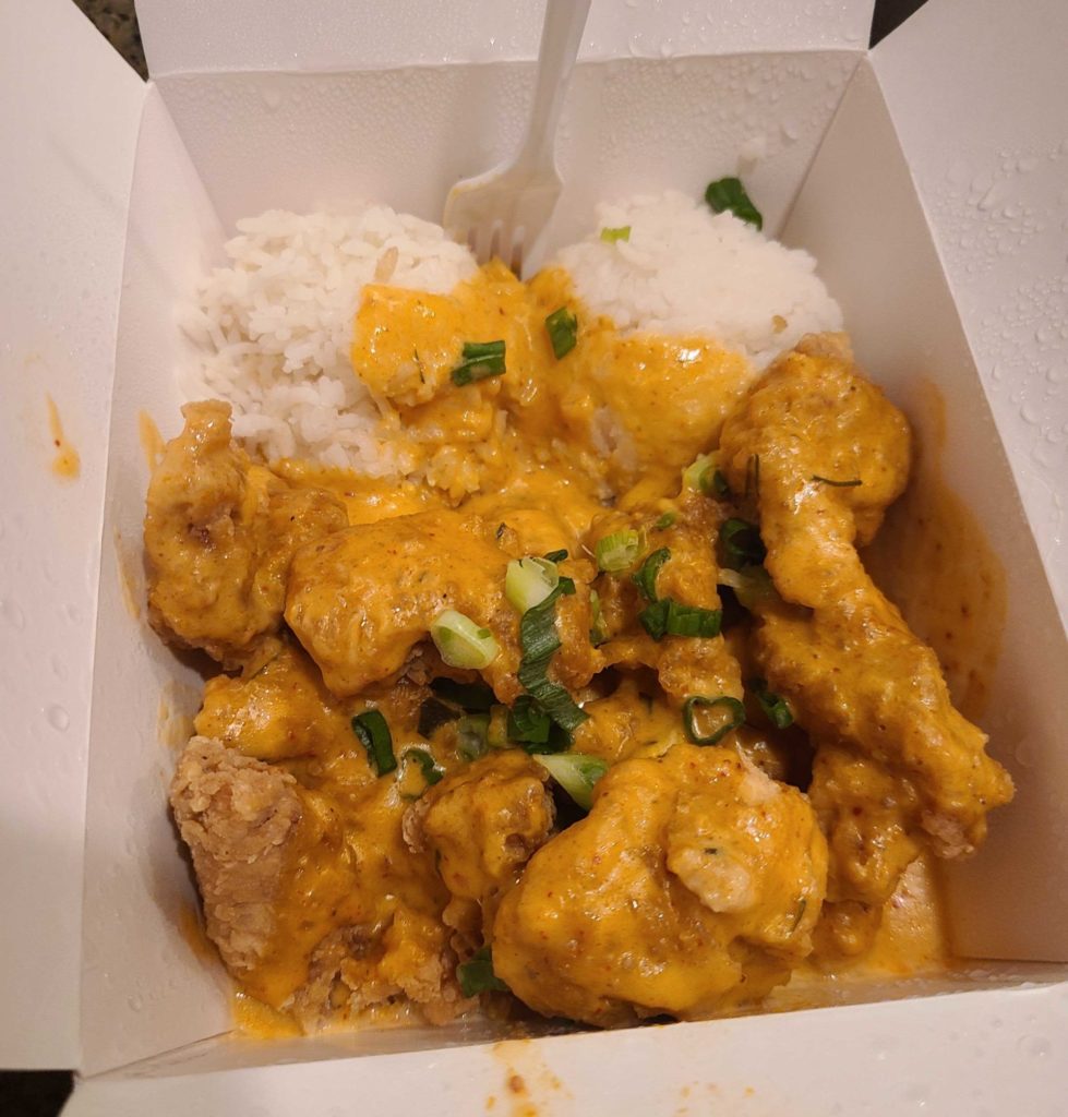 Columbus is a hot bed for food trucks and even with the pandemic in full swing, the owners continue to work tirelessly to keep their business alive. This week we ventured to Fetty’s Street Food, located at the time at the Daily Growler in Powell. We’d heard of Fetty’s Street Food many times, but hadn’t managed to be in the right place at the right time to snag some of their South African, Indian, or Thai dishes. The Lady of the Farm got a tip a while back that there was a particularly fiery phall curry that Fetty’s had made in the past, so we were intrigued. After some messaging back and forth, we learned more and were notified when the “hottest curry in the world” was ready to go. Arriving at the truck’s location, the big letters and colorful geometry greet you with the same friendliness as the owner and chef himself, Damian Ettish. From the previous paragraph you may be thinking “South African, Indian, and Thai are a unique trio,” and you’re not wrong. Ettish pulls Fetty’s cooking inspiration from his own history of growing up in South Africa and his time spent in India and Thailand, where he learned to cook street fare. Items like Curry Leaf Paneer, Bunny Chow, and even General Tso’s, show the range of his skill as well as the flexibility that his food truck grants. If you find Fetty’s in your area, we definitely recommend checking them out and chatting with Damian. Super nice guy that won’t make you feel silly if you don’t know what one of his dishes is.
