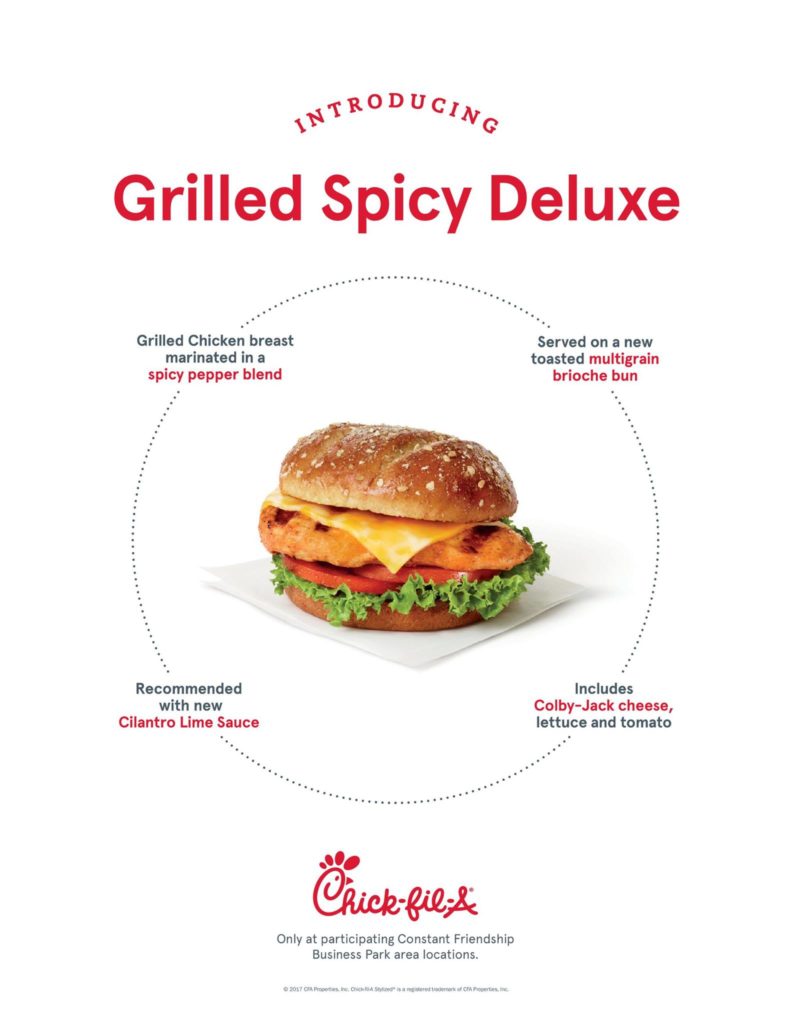Starting tomorrow at Chick-Fil-A, you’ll be able to get a “healthier” spicy chicken sandwich from the clucking king. Chick-Fil-A’s Grilled Spicy Deluxe is “A boneless breast of chicken marinated with a blend of peppers and grilled for a tender and spicy taste, served on a toasted multigrain brioche bun with Colby-Jack cheese, Green Leaf lettuce, and tomato. Served with Cilantro Lime Sauce.” This will make it one of the only spicy grilled chicken sandwich in the fast-food world, a positive for those that are looking to be carb-conscious at the beginning of the year.