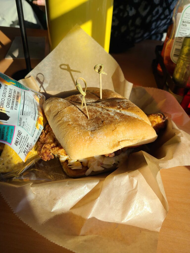 Katalina’s Southern Fried Buttermilk Chicken Sandwich is Katalina’s foray into the Nashville Hot chicken world. Rocking a “chicken breast buttermilk-brined, dredged in flour and ground local Shagbark corn-chips with North Market Spices Nashville Hot Chicken Spice, then fried before it sits tight on ciabatta with local heirloom tomato, Cooper’s Mill Peach-Habanero jam & fresh corn cabbage slaw.”