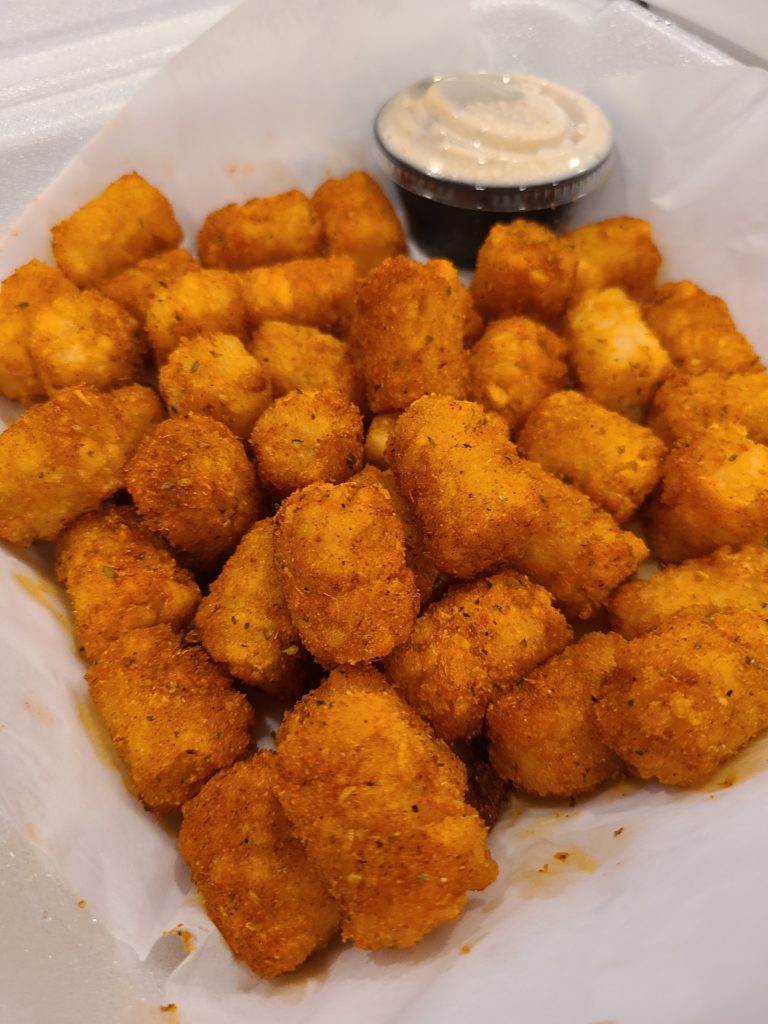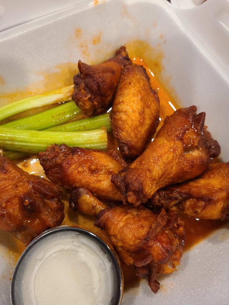 I’ve had a lot of “Hot” wings in my day and found that each brings something different to the table. Rude Dog throws tradition out the window and woofs on in with a “Hot” sauce that is sweet, a little sticky, and a paws-worth of spiciness. It’s a bit of a mutt because compared to traditional Hot wings, it’s almost a blend of sweet chili, BBQ, and traditional Hot. A few seeds adorn the wings, and a few wings in, the heat was circling the tip of my tongue, preparing to lay there for a bit.