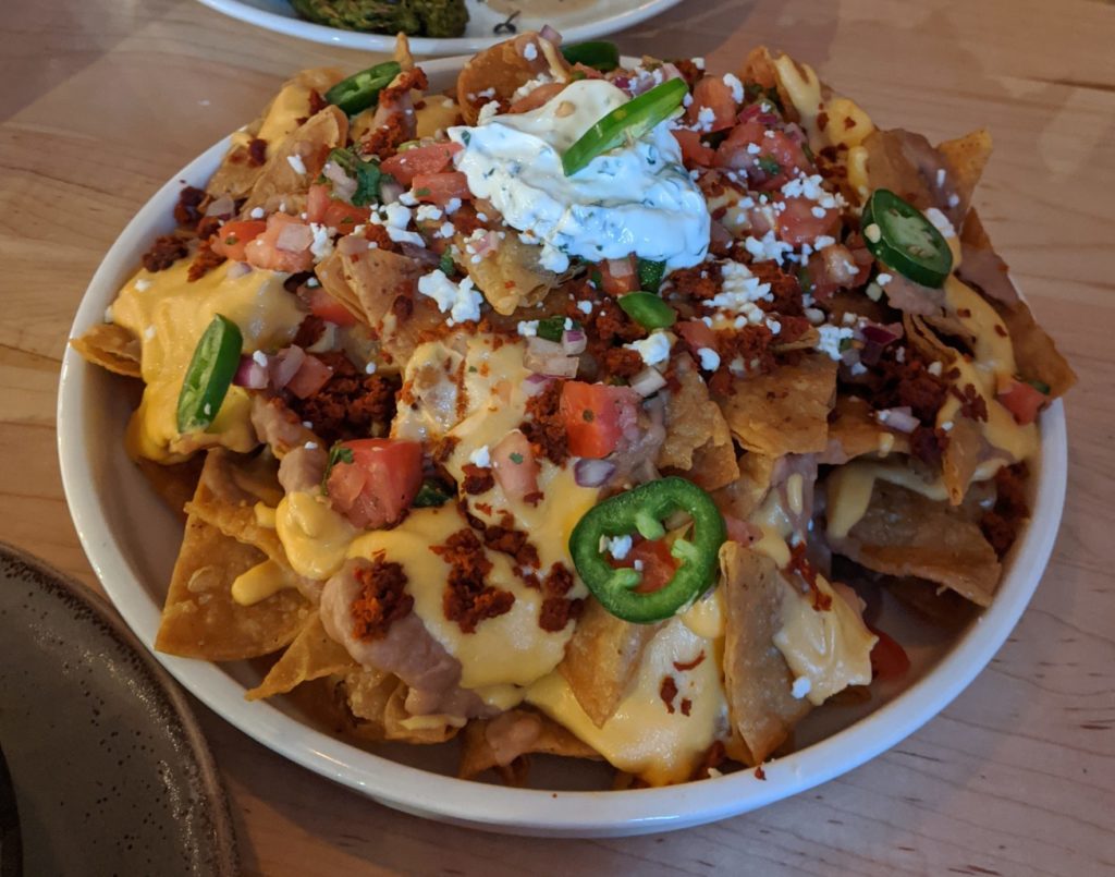 KH5 Nachooooooos.[/caption] These are the KH5 Nachos, which when they come out you realize could just be called K5 nachos because they are a mountain of a dish. (K5 is located in the Karakoram region of the Himalaya. It’s the 11th highest mountain in the world. The more you know.) Stacked with jalapeños, chorizo, habanero cheese, pico de gallo, refried beans and cilantro lime sour cream, these nachos are legit. The chips are nice and crunchy but don’t dissolve under the heaviness of the cheese or refried beans. A tiny sniffle and a refusal from the Lady of the Farm to eat a raw jalapeño got my hopes up that maybe, just maybe, the dish with “habanero” in the title was going to enter the top 20. [caption id=“attachment_1968” align=“aligncenter” width=“1024”]