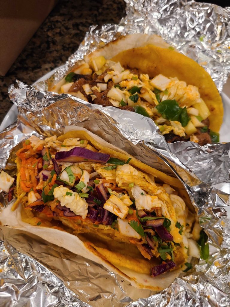 The Lady of the Farm went with a selection of tacos (hard and crunchy shell inside!). With options like Bulgogi Burritos and Birria Quesadillas, TaKorea holds an interesting mix of its two food genres on its menus.