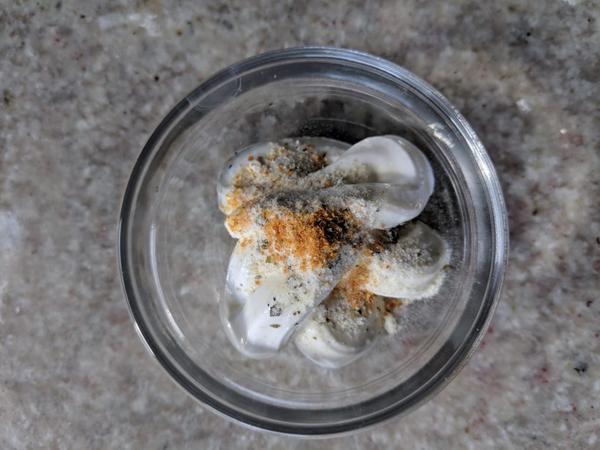 This was our hastily made dipping sauce. It’s sour cream, ranch seasoning and habanero powder. Pretty tasty little side sauce for the peppers. How do you like your shishito peppers?