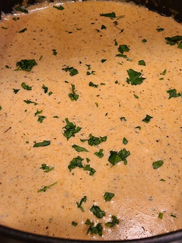 It’s allll starting to come together. Look at that sawce. As things thicken, add more or less heavy whipping cream to get it to the consistency you’d like. Overall I could slather this sauce on just about anything and don’t worry if it’s not spicy enough for you, it’s likely able to singe eye brows off of some family members. If not, you can always add more pepper powder.