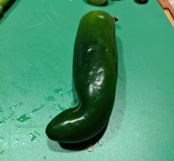 The in-law of the farm loves this saw, so when they were in town a few weekends ago we whipped up a batch. Apparently it’s mostly gone already, the sign of a winner! Finding jalapeños is typically an easy task, but on this particular grocery trip, the first two places we looked they were gone. Like, completely gone. Not, “ohhh, all the good ones are taken, darn” but every single scrap was gone. We ended up finding some fat, ugly (in a good way) jalapeños at our local Asian grocer, same as where we found the unripe green Thai Chili used in our Kingdom Farts hot sauce. It would be cruel to talk about the ugliness and not show you, right? Fair enough, here’s the ugliest pepper.
