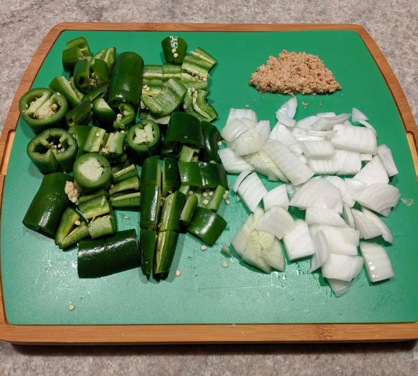 Chop the jalapeños up a bit, we want them to mingle with everything else during the initial cook.