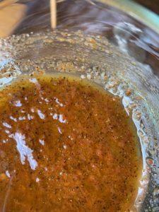 The drizzle.[/caption] Now for the drizzle. Combine all other ingredients in a bowl and then toss those carrots until they glisten. Make sure you spread them all back out so that they cook evenly and don’t spread cooties. Roast for 30 minutes, checking periodically because there’s a fine line between beautifully roasted and burnt.